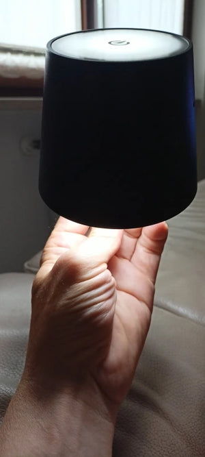 A diferencia de otras, esta lámpara ofrece control táctil intuitivo, tres colores de luz y recarga fácil, mejorando el ambiente con elegancia.